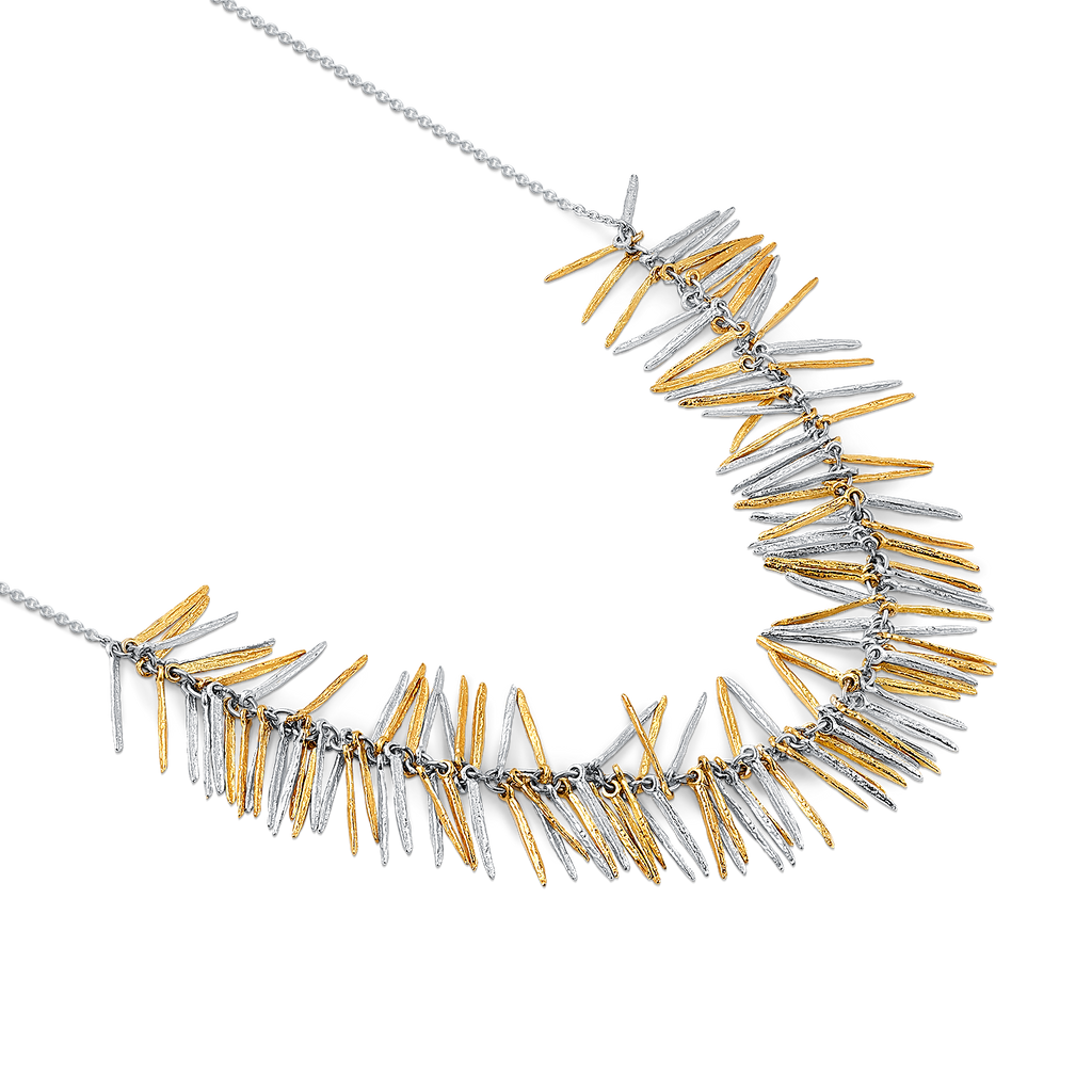 Each piece of jewelry is handcrafted by skilled Israeli artisans, featuring over a hundred delicate pins carefully attached one by one to a branch-like base.