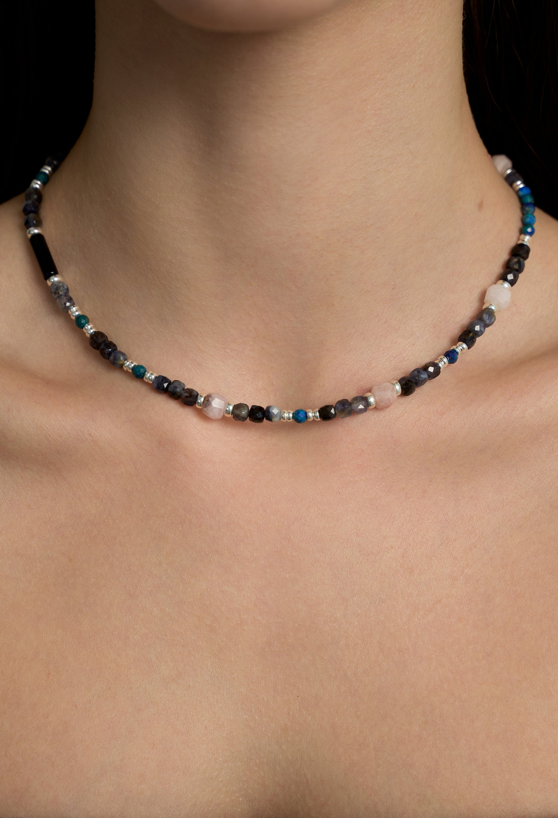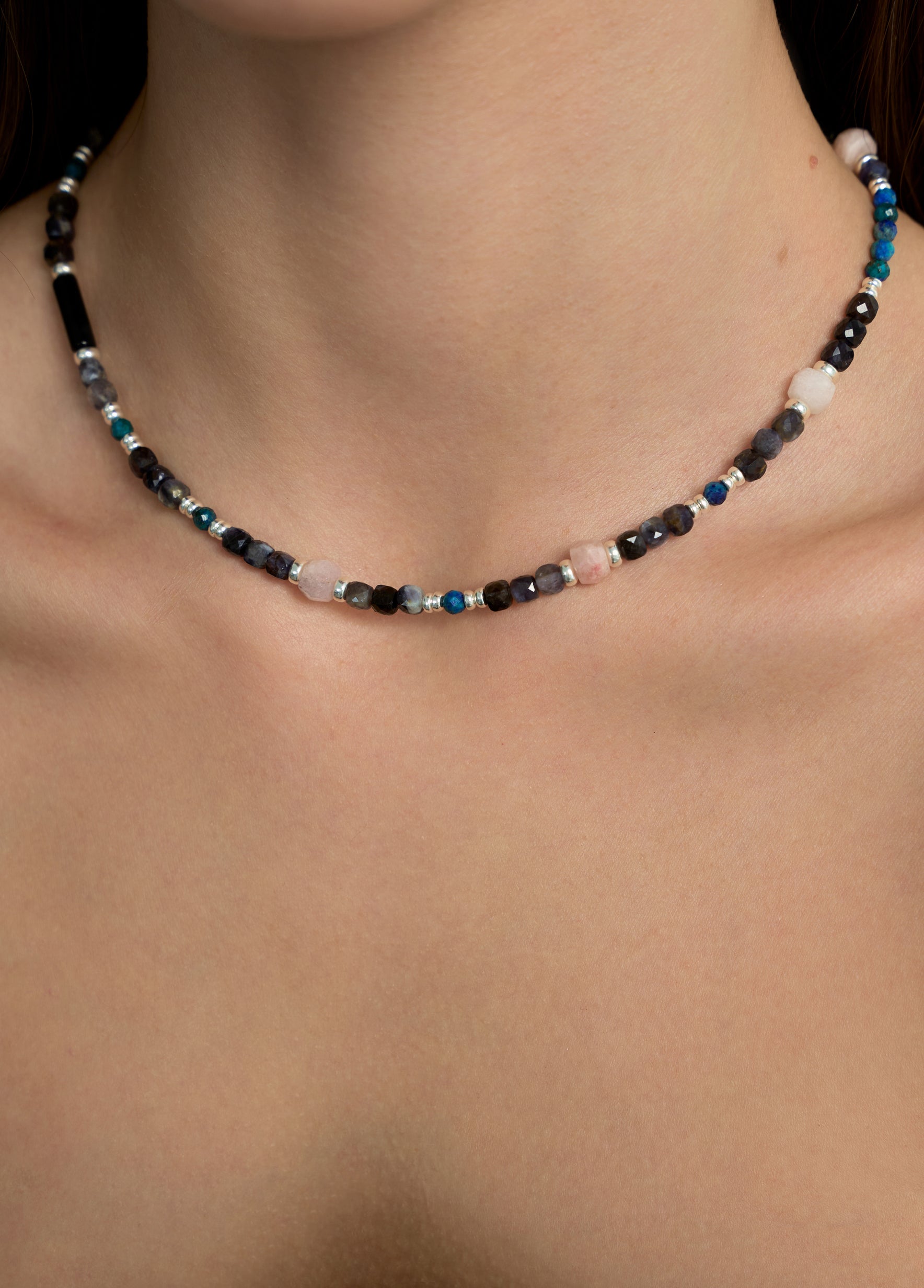 • necklace with natural semiprecious stones — opal, iolite, agate and chrysocolla;